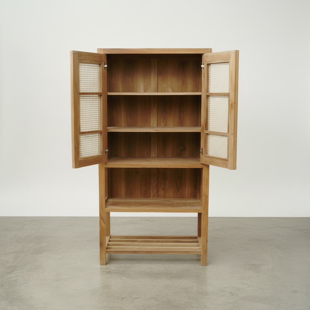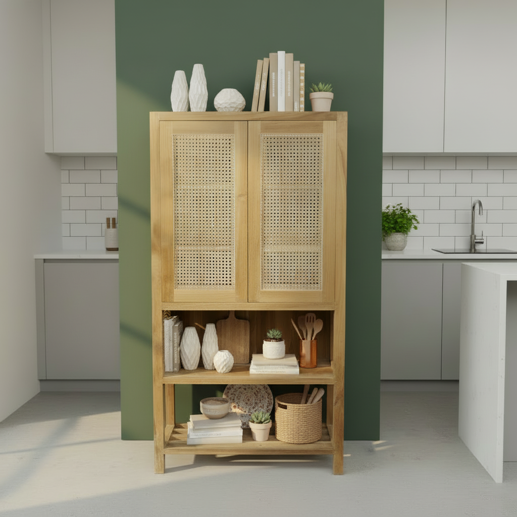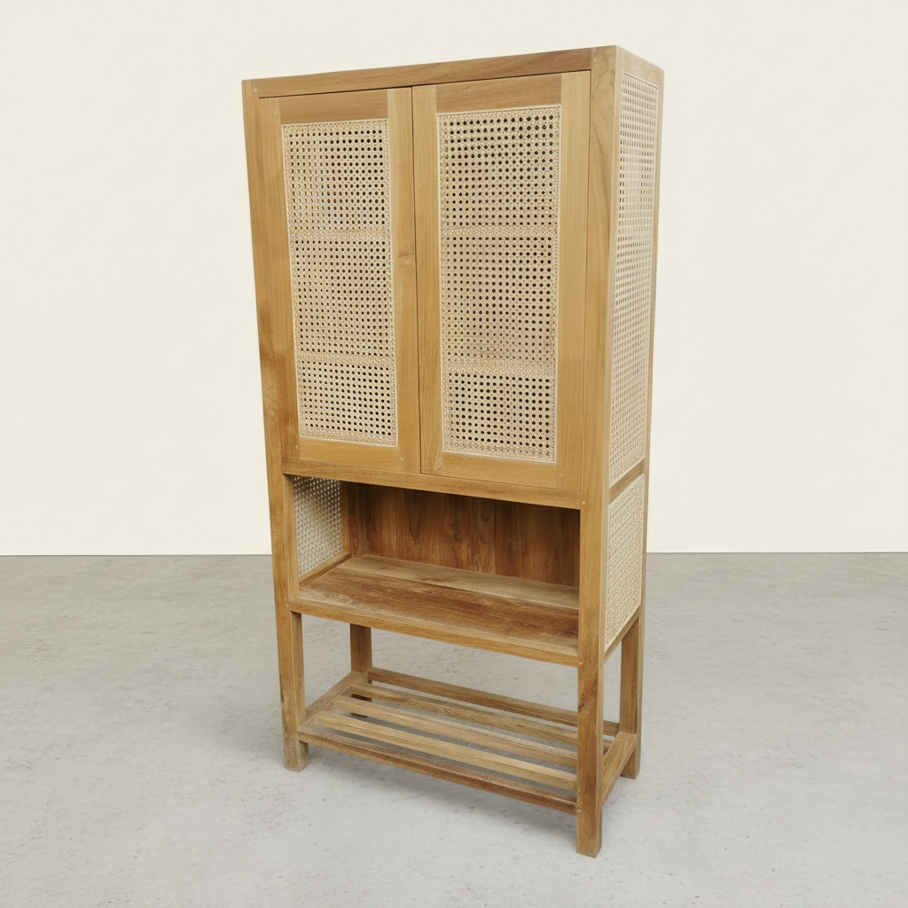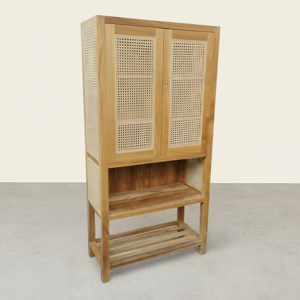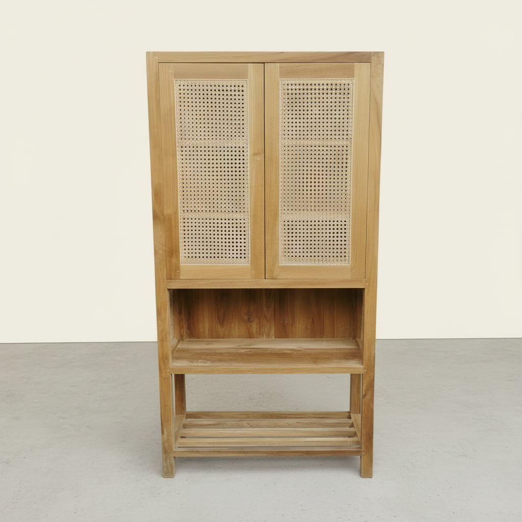 Add some old school charm to your pantry with the Bingin Pantry Type 1. Made of rattan and teak, this pantry exudes a rustic vibe that will bring unique character to your kitchen space. Keep your kitchen essentials organized and stylish with this charming addition.