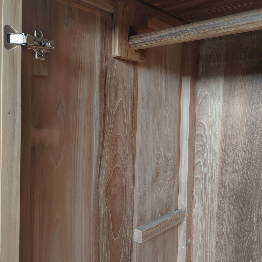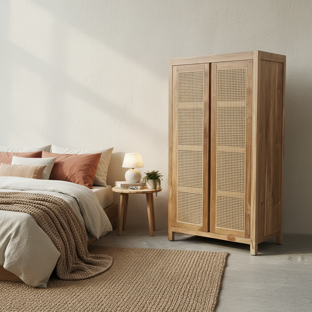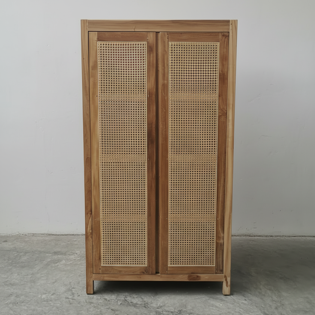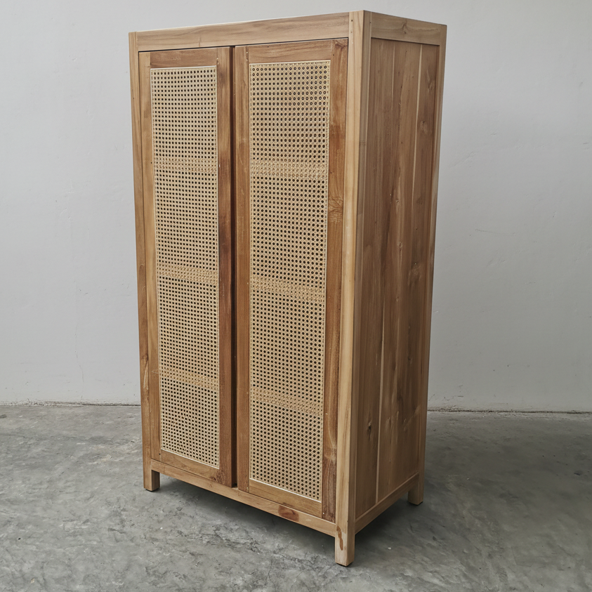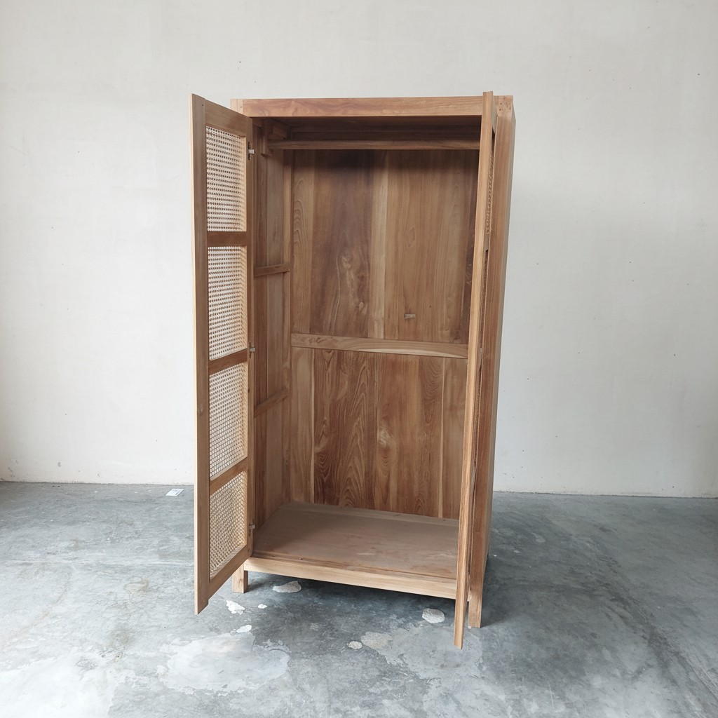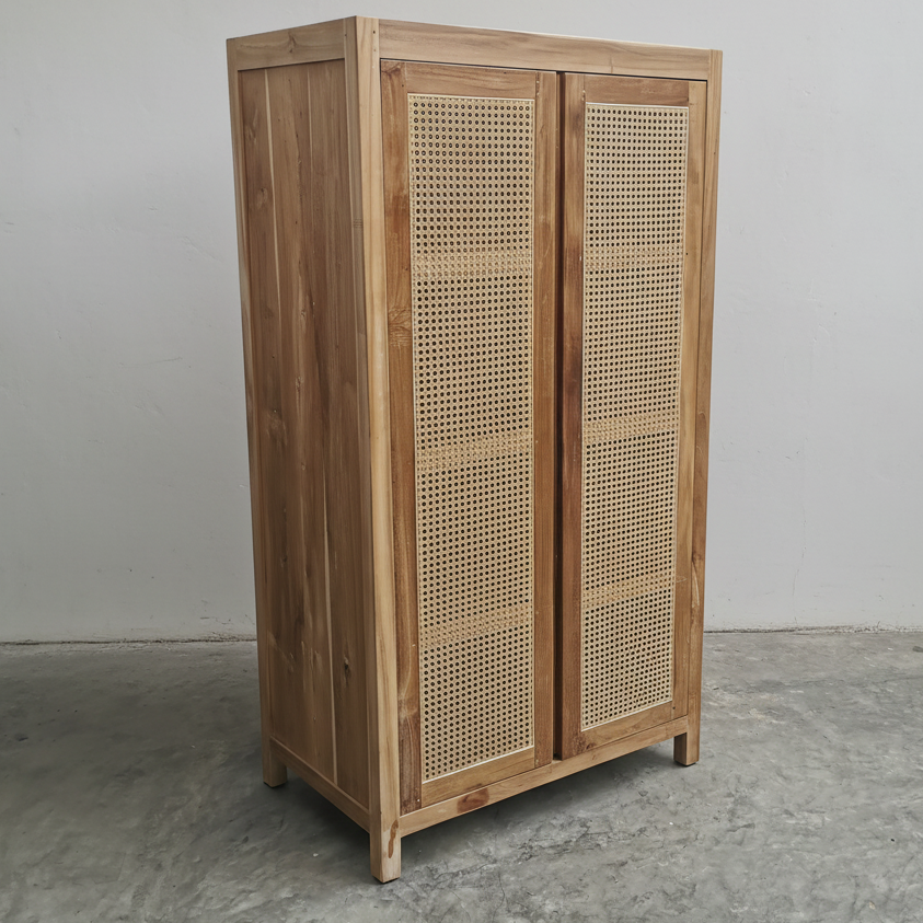 The Bingin Wardrobe is a stylish addition to any bedroom. Crafted with reclaimed teak and rattan for a timeless look, the airy and spacious design offers plenty of storage for all your belongings. The included hanging rail provides a neat way to hang for your clothes.