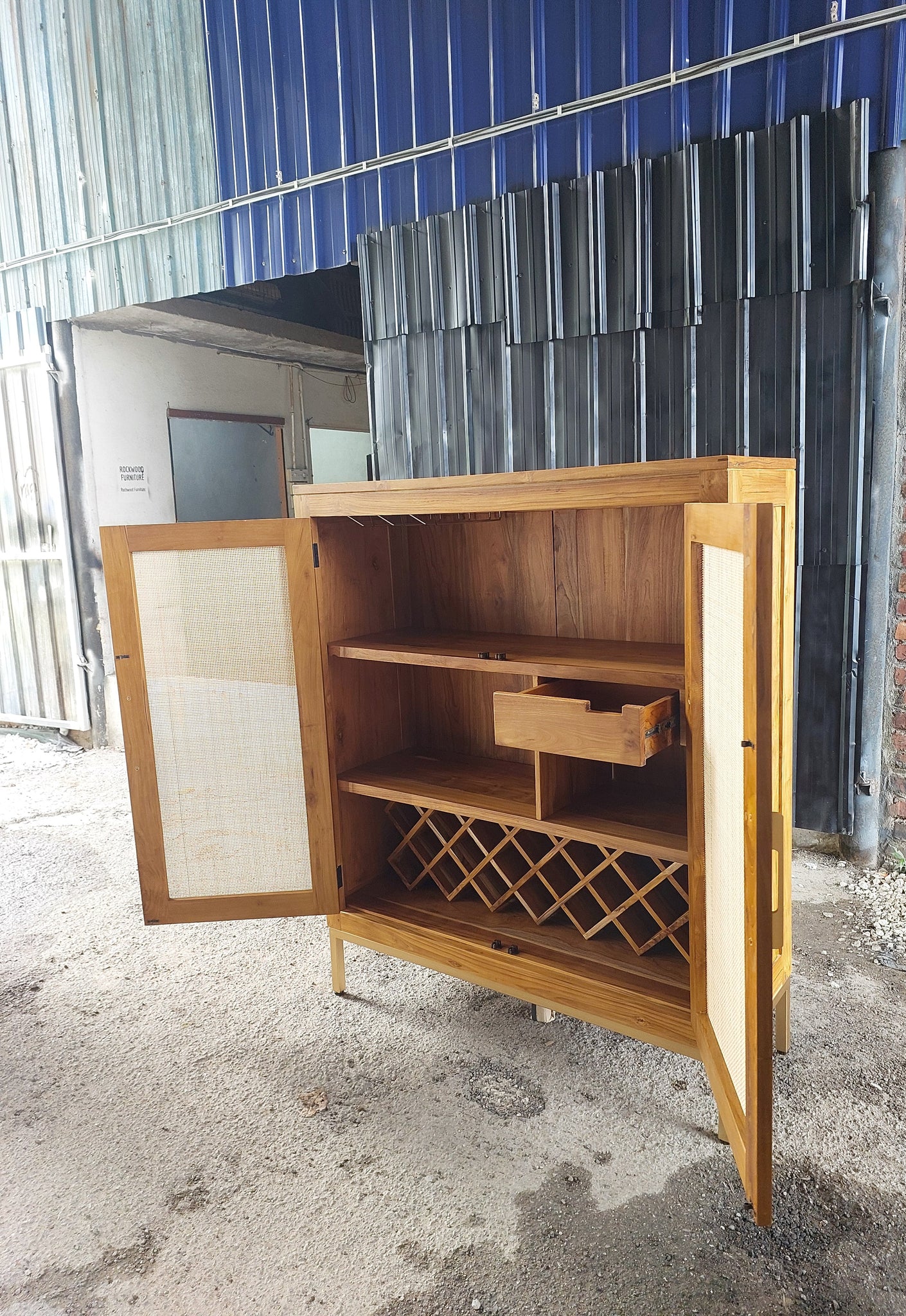 The Bingin Wine Cabinet is made with quality reclaimed teak and rattan for a sophisticated and functional piece of furniture. The elegant design allows you to store your items in an organized way, helping to keep your space neat and tidy.