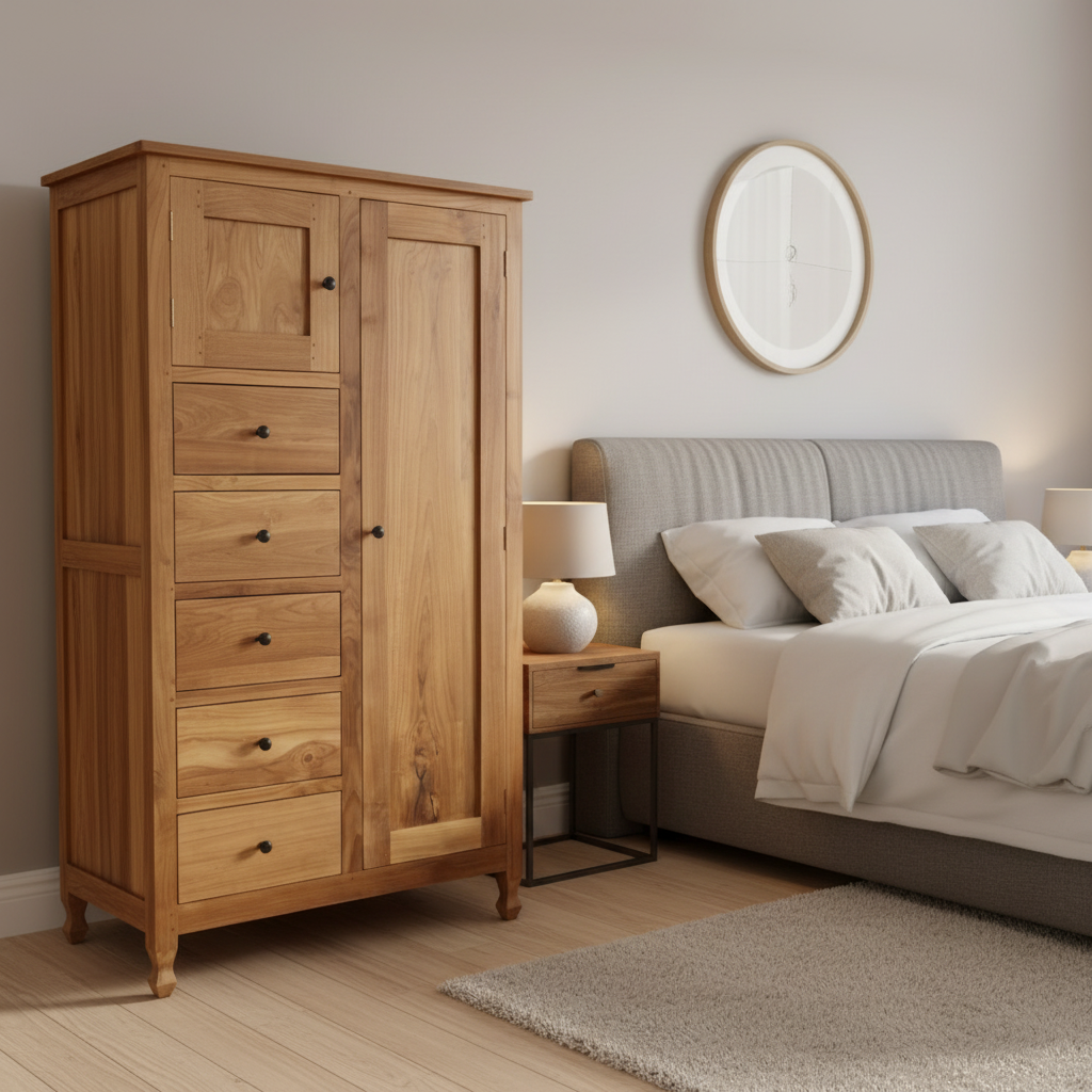 Make the most of any room with the Bronte Tallboy! Its versatile style lets you use it in your bedroom for your clothes and accessories or in the dining room for your flatware and cutlery! Enjoy the shelves and drawers for plenty of storage.