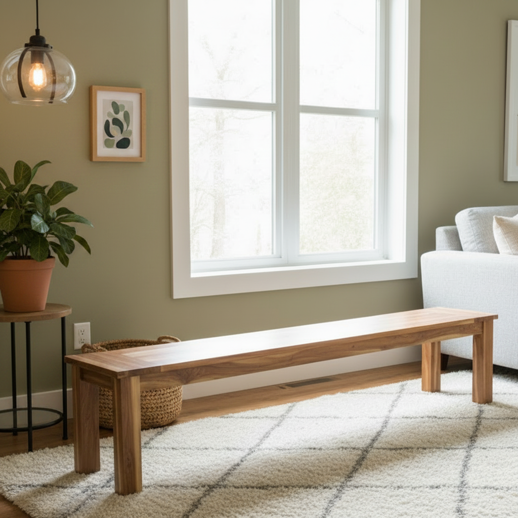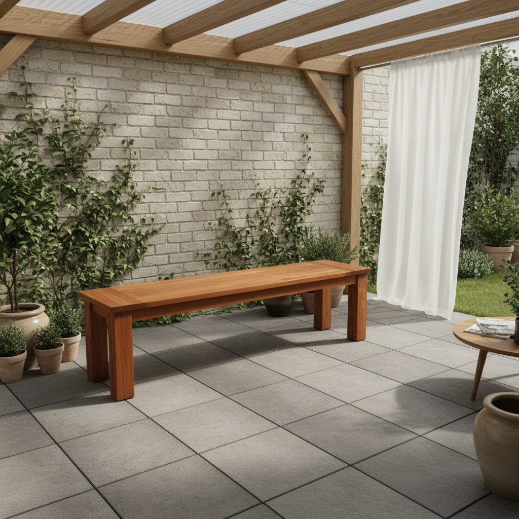 Transform your space with the Cancun Bench! Crafted from solid wood, its timeless design suits modern or classic spaces—both indoors and out—perfectly. Coordinate with matching Cancun dining tables for a cohesive look. A perfect blend of style and comfort.
