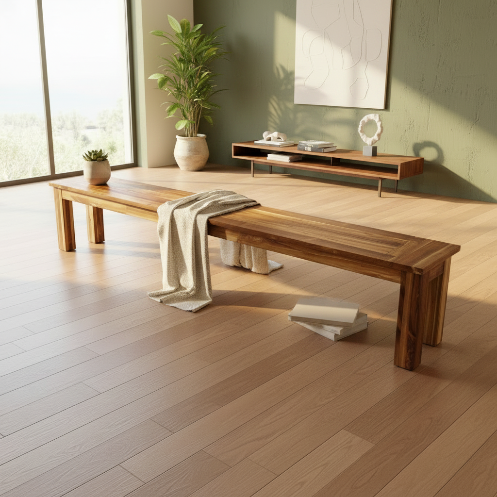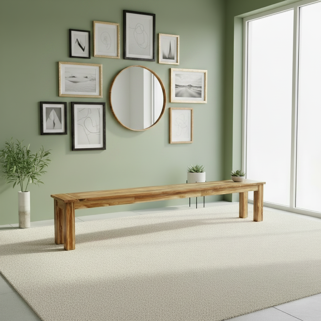 Transform your space with the Cancun Bench! Crafted from solid wood, its timeless design suits modern or classic spaces—both indoors and out—perfectly. Coordinate with matching Cancun dining tables for a cohesive look. A perfect blend of style and comfort.