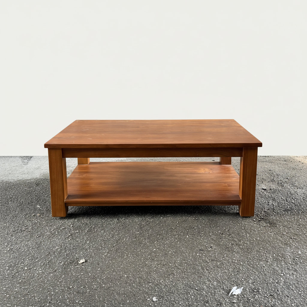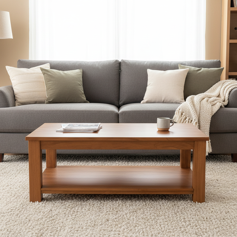 This simple coffee table is the perfect display unit for any living space. With a convenient shelf for storage or displaying your favorite decor, it adds both style and functionality. A must-have for any coffee lover's home!