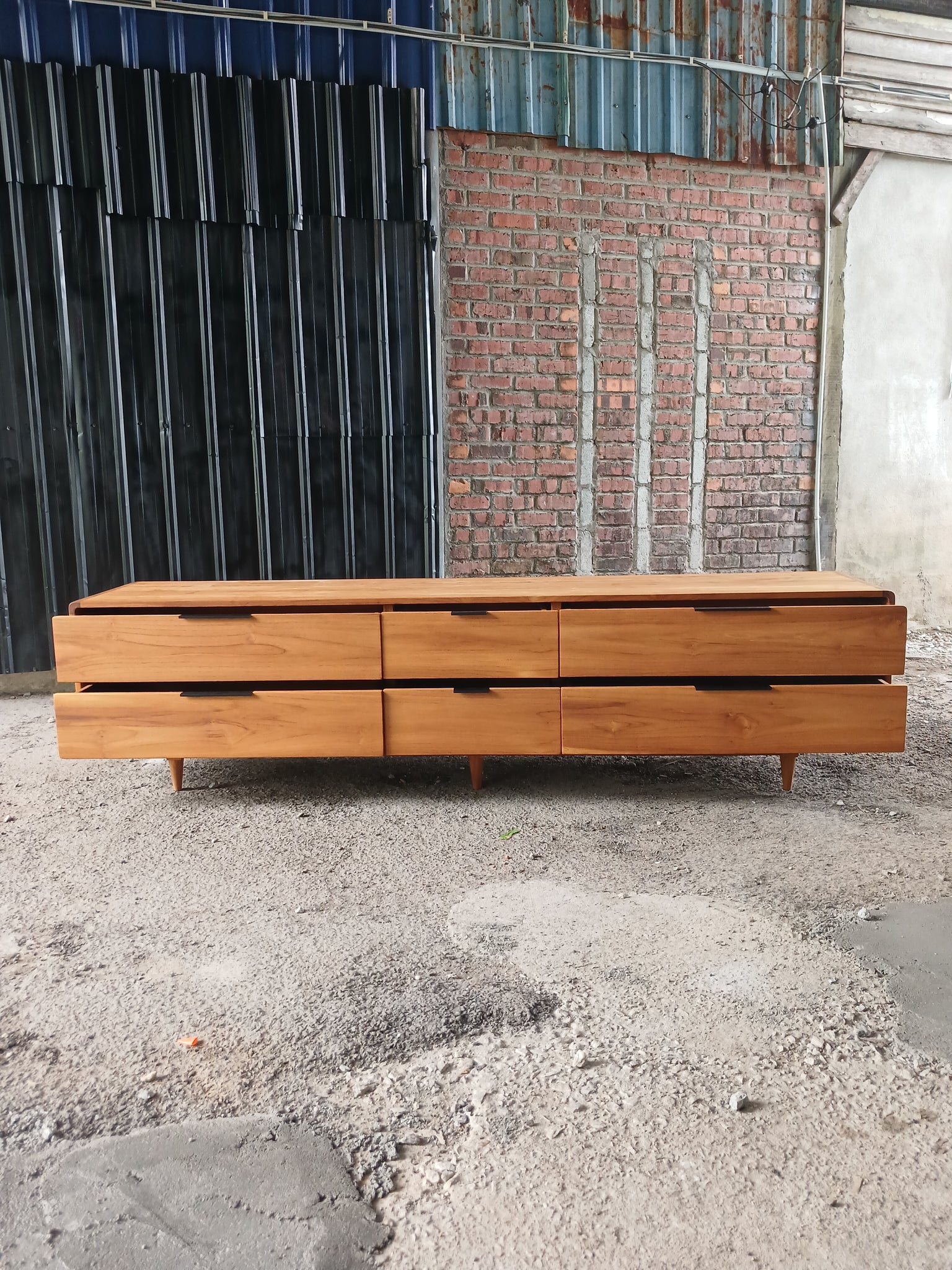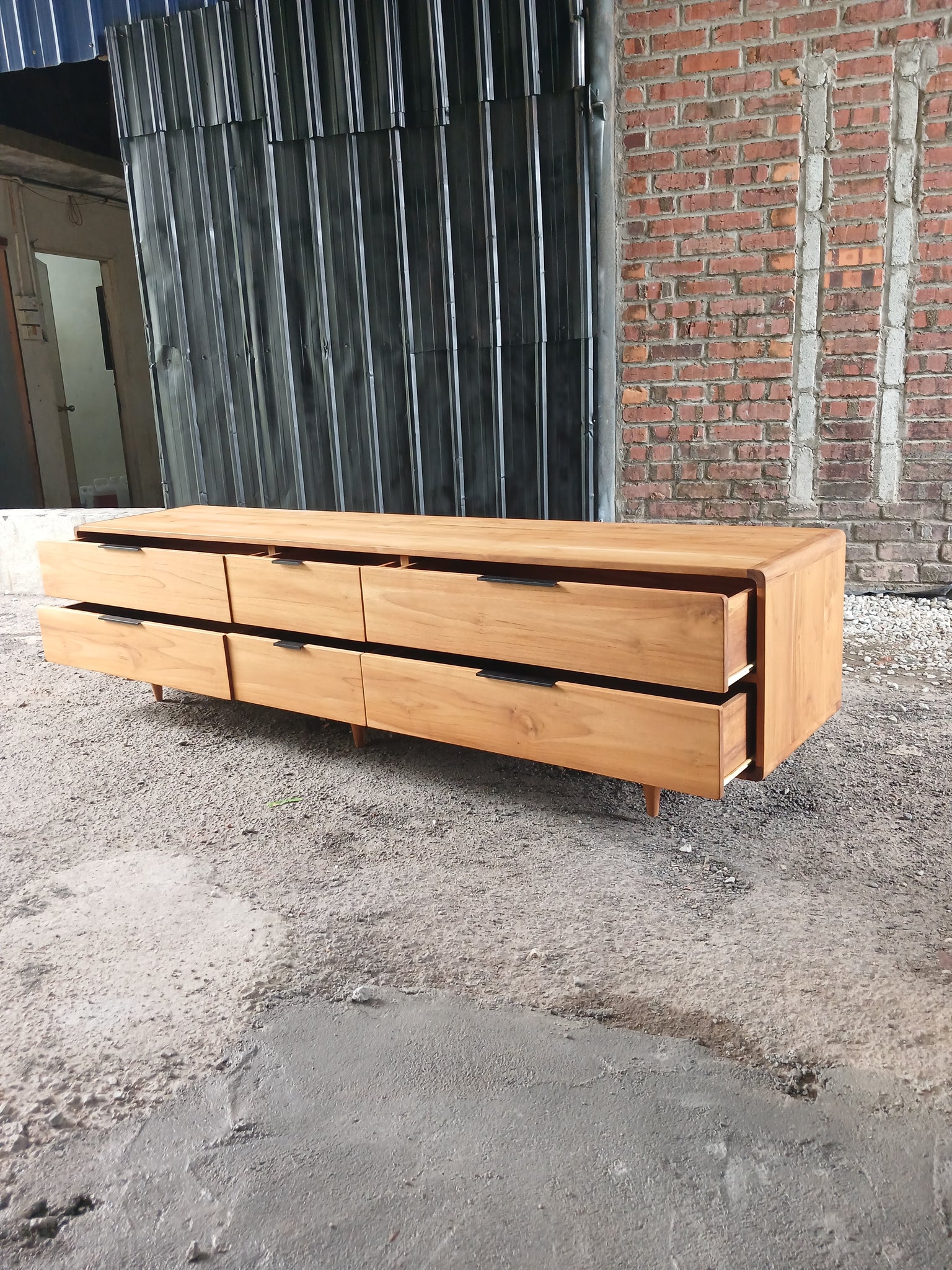 Enhance your living space with this stunning Ramberg TV Console. Crafted from solid reclaimed teak, it offers a modern design with plenty of storage to organize your media needs. Add a hint of style to your home and enjoy its timeless beauty for years to come.