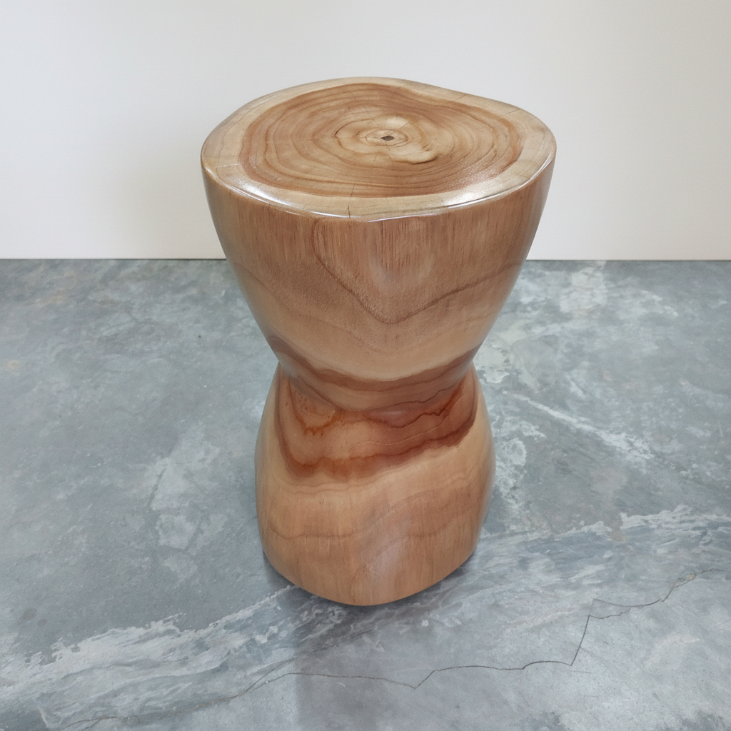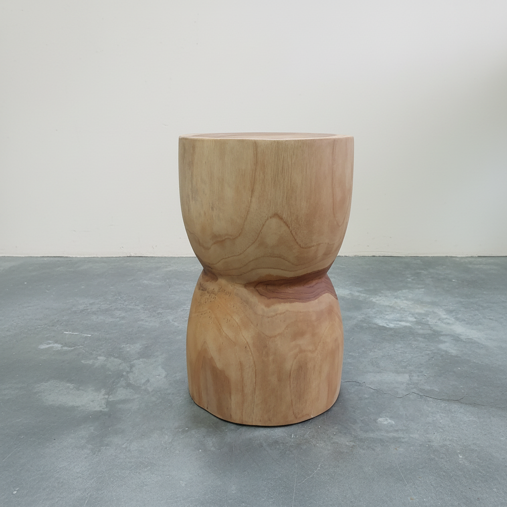 Enjoy the rustic, organic charm of the Hourglass Stool/Plinth. Crafted from solid teak trunk, it brings natural beauty to your home. Use it as an indoor sidetable or an outdoor stool - it's ready for anything. Add warmth and character to any space with this stunning piece.