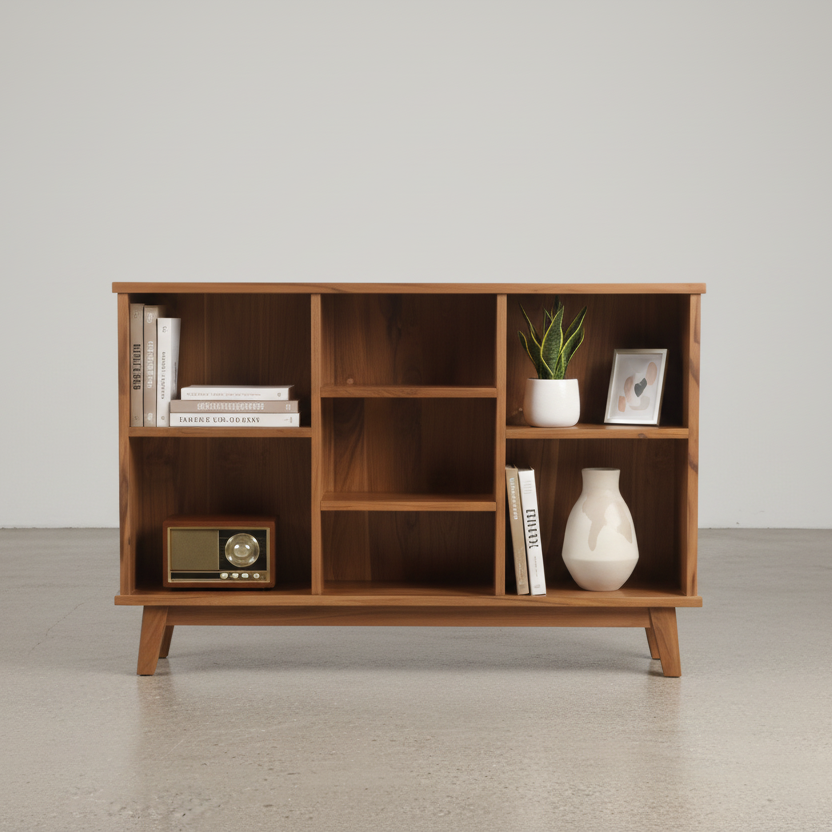 Elevate your book storage with the Ilyas Bookshelf! This modern and sleek design is not only practical, but also adds a touch of sophistication to any room. Say goodbye to boring bookshelves and hello to a stylish way to display your books.