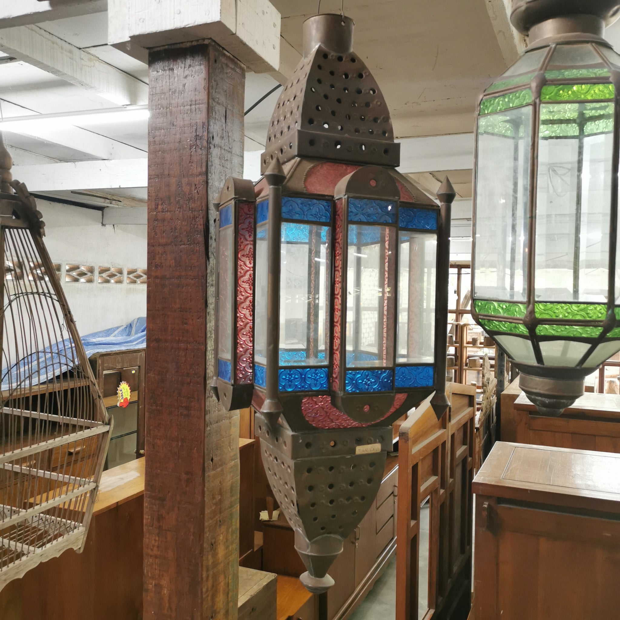 Transform your space with our XL Lantern, featuring a blend of brass and stained glass. Let the Moroccon-inspired design transport you to faraway places while adding a touch of exotic elegance to your home.