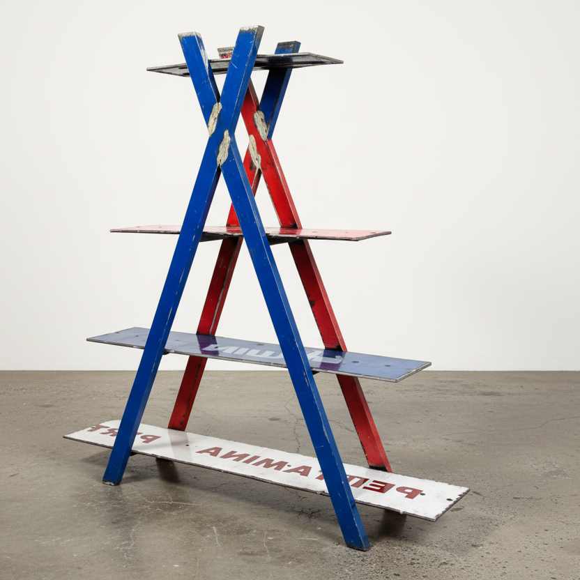 This unique oil barrel shelf unit will elevate your home decor with its one-of-a-kind design. Constructed from a repurposed oil barrel, it not only adds a touch of creativity to your space, but also provides a functional shelf for storage and display. Elevate your home with this truly unique piece now!