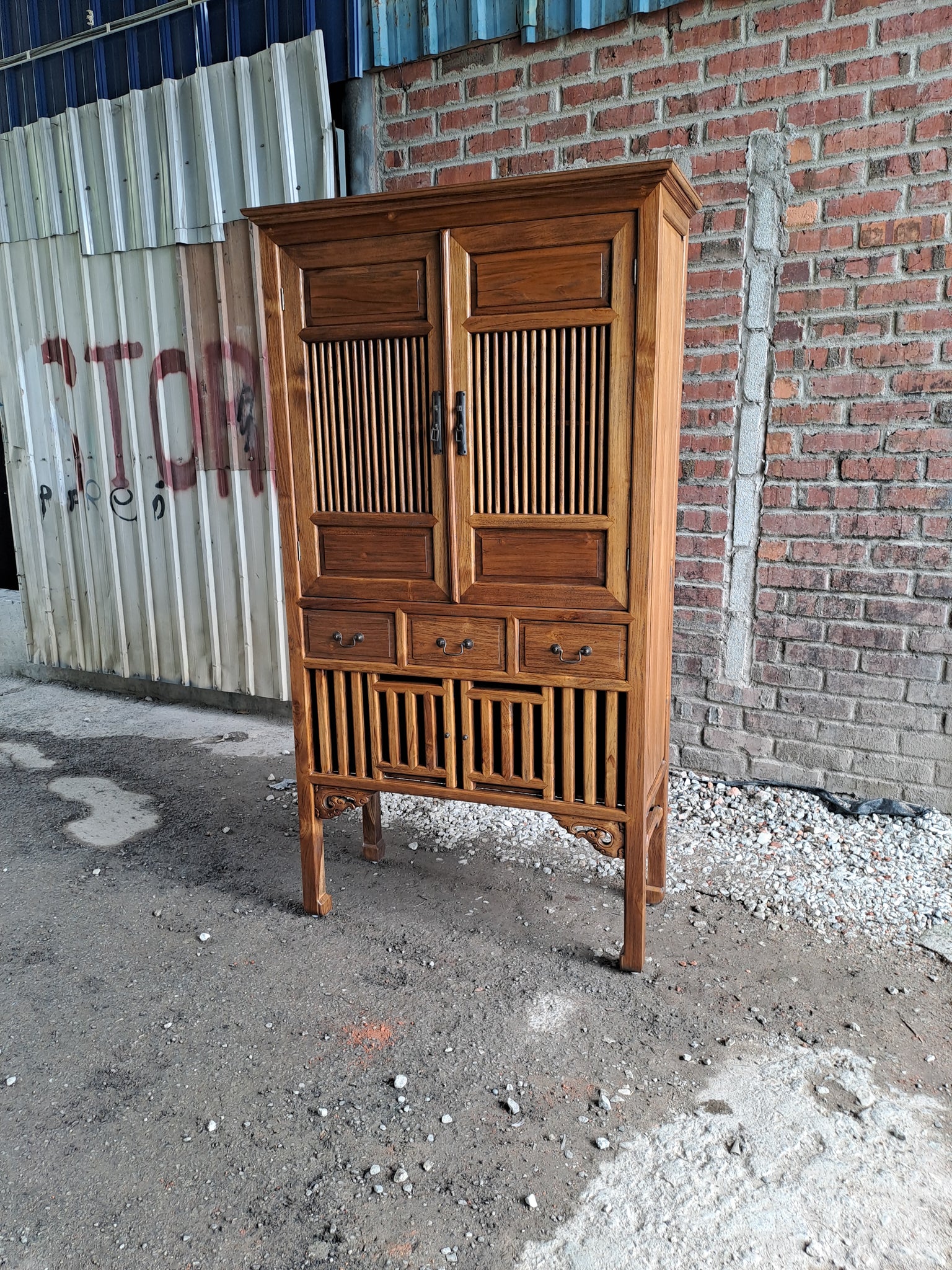 This vintage style Oriental Cabinet is a beautiful and colourful addition to any home. With intricate detailing and a vibrant color palette, it will add a touch of elegance and charm to your space. Perfect for storing and displaying treasured items. Elevate your decor with this stunning piece!