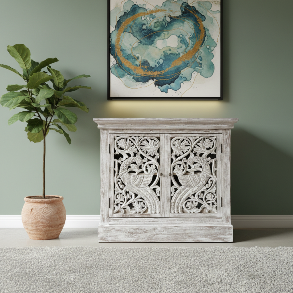 Elevate your home with this stunning Ornate Cabinet, a masterpiece of craftsmanship that transcends fleeting trends. Hand-carved details showcase intricate artistry, creating a focal point that commands attention in any room. This timeless piece blends classical elegance with practical functionality, making it an investment that grows more beautiful with age. Perfect for those who appreciate furniture that tells a story and stands the test of time.
