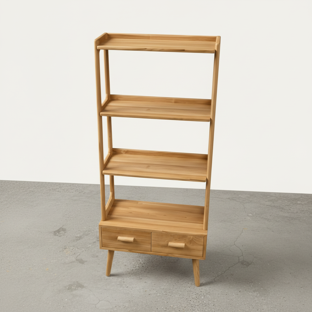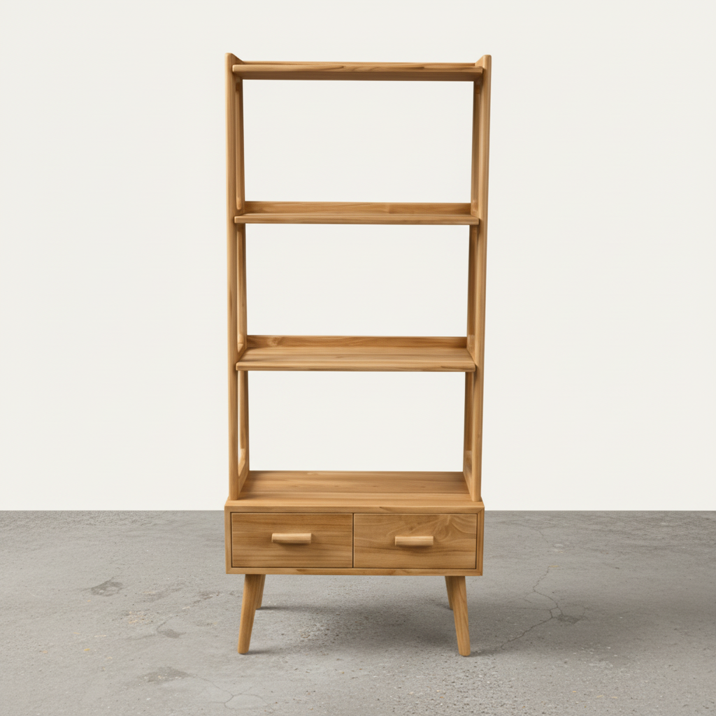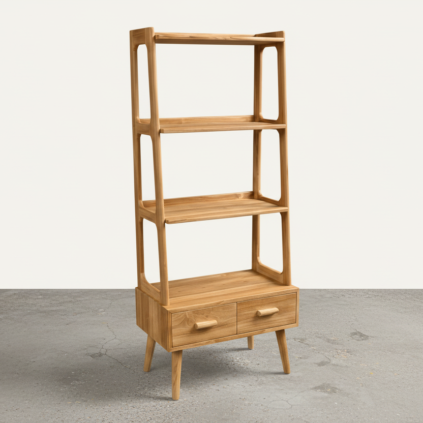 Enhance your space with the unique design of the Ramberg Shelf Unit. The retro style and lighter coloured wood add a touch of sophistication and charm. Perfect for displaying your favorite decor, this unit will elevate the look of any room.