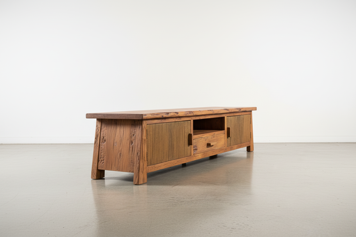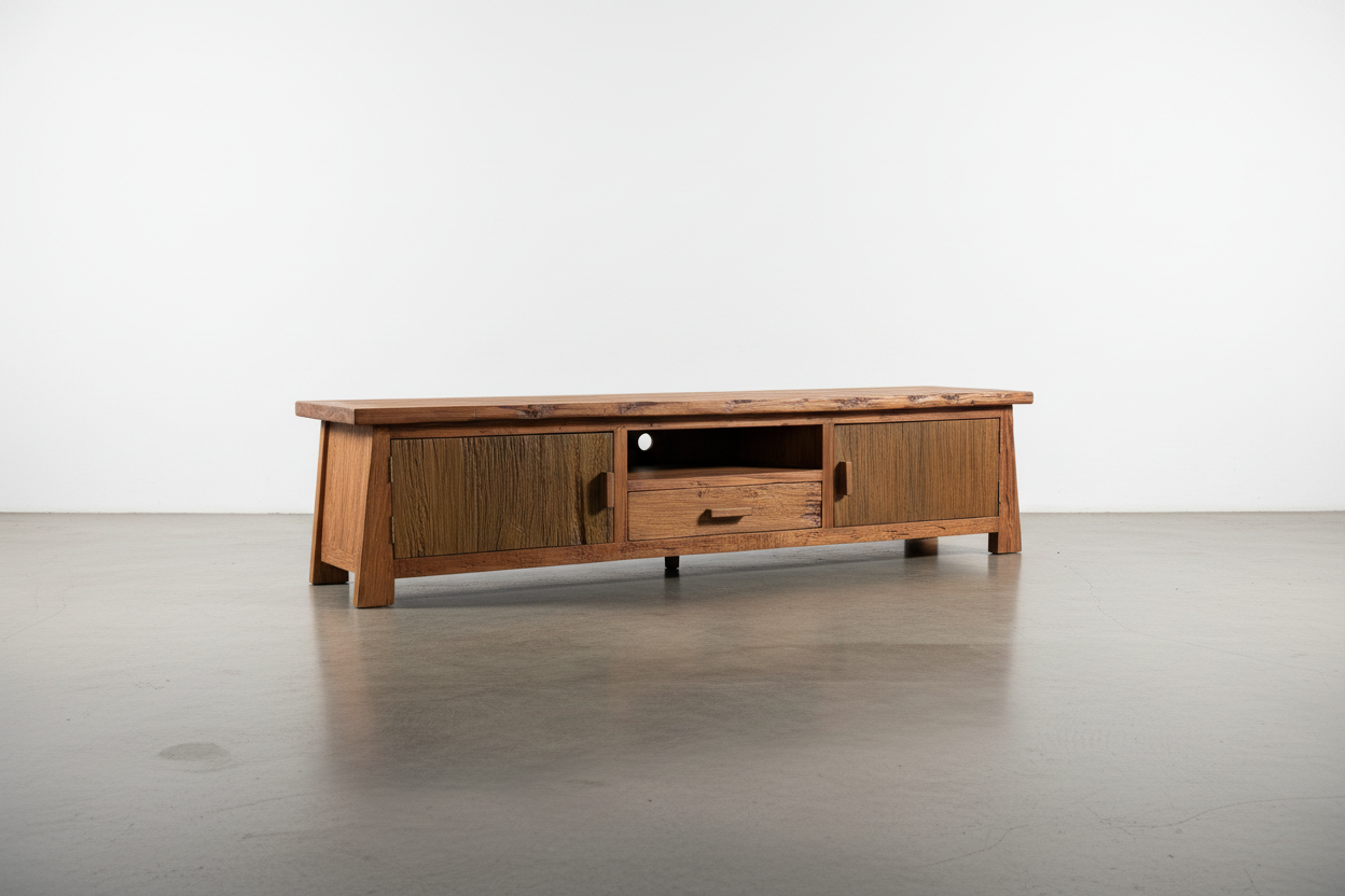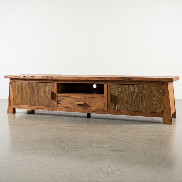Bring warmth and character to your living space with this distinctive Rustic TV Console. Handcrafted from solid teak, this piece combines authentic country charm with practical functionality. The natural grain and weathered finish celebrate the wood's organic beauty, while sturdy construction ensures lasting durability. Perfect for creating that coveted rustic retreat atmosphere, this console offers generous storage for media equipment and décor. An investment in timeless style that transforms any room into a cozy, inviting sanctuary.